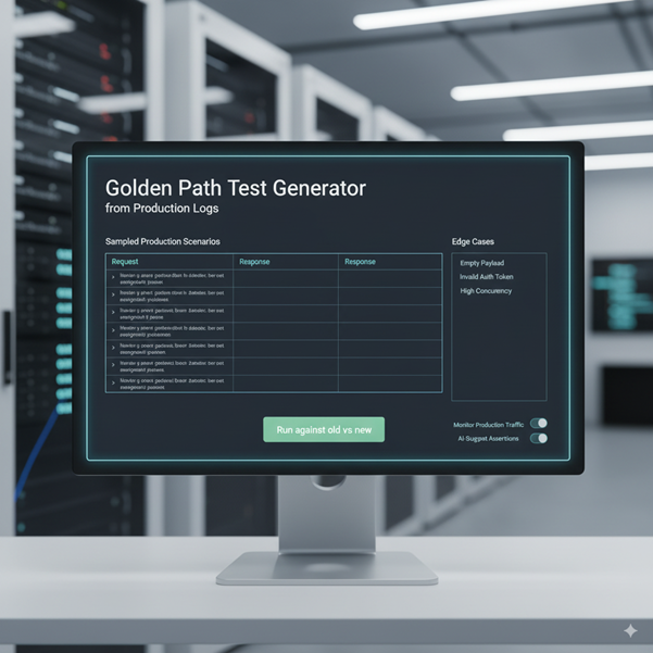 Most legacy services are under tested in the places that matter. The fastest way to gain confidence is to test what users actually do. LensHub uses production logs to synthesize "golden path" examples. For each key endpoint the system generates request and response pairs, edge cases from real traffic, and a small harness to run them against old and new implementations.